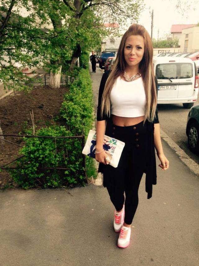 În imagine, Cristina este îmbrăcată într-o pereche de pantaloni cu talia înaltă şi un tricou scurt, iar abdomenul bine lucrat la sală a ieşit în evidenţă. În urmă cu câteva zile, tânăra era şatenă, iar acum este blondă.