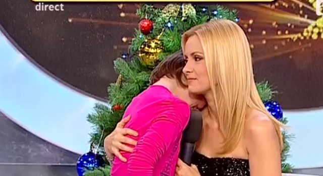 Pentru că oamenii de acasă intrebau ce măsuri poartă copii la haine, Simona Gherghe a luat-o alături pe Bianca, fetiţa de 11 ani a familiei Baciu. Prezentatoarea nu a rămas indiferentă la lacrimile care şiroiau pe obrazul copilei şi a strâns-o la piept, izbucnind şi ea, în lacrimi.