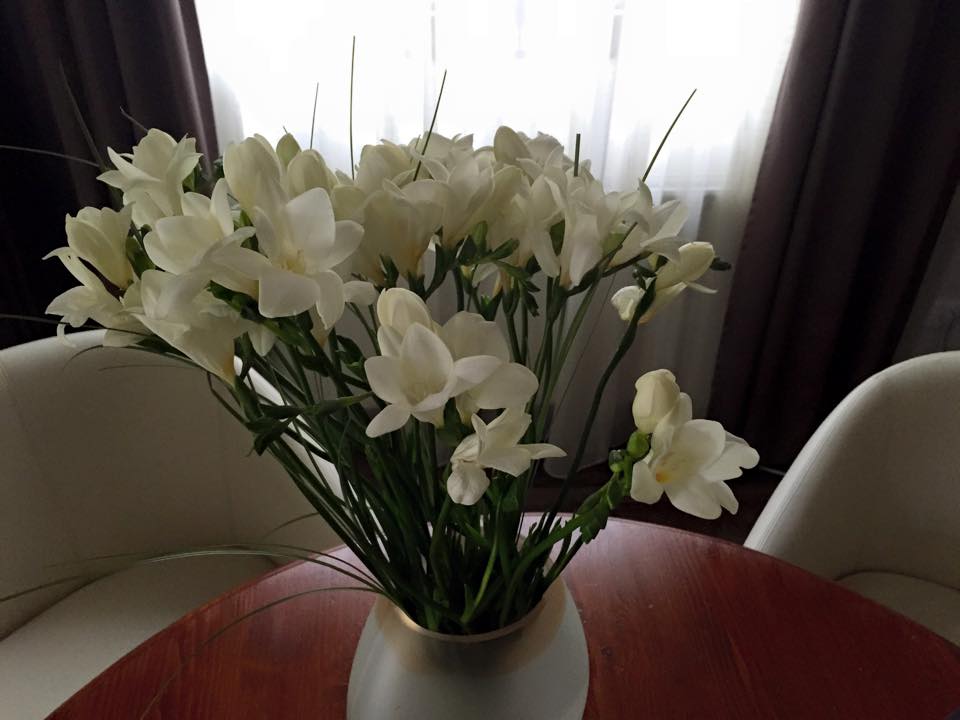 Simona Gherghe a fost plăcut surprinsă, duminică, de ceea ce a găsit pe masa din leaving. Vedeta a făcut imediat o fotografie şi le-a arătat-o şi prietenilor ei virtuali, împărtăşind cu aceştia momentul fericit. În imagine, admiratorii prezentatoarei "Acces direct" au putut vedea un superb buchet de frezii.