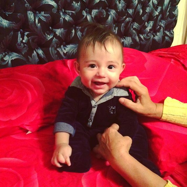 În imagine, micuţul David stă în fund pe pat şi zâmbeşte frumos la camera de fotografiat. În urmă cu doar câteva zile David a împlinit frumoasa vârstă de 5 luni. "Am găsit un ştrumf montat la mine în pat. Pot să îl mănânc?", a scris Andreea pe Instagram.