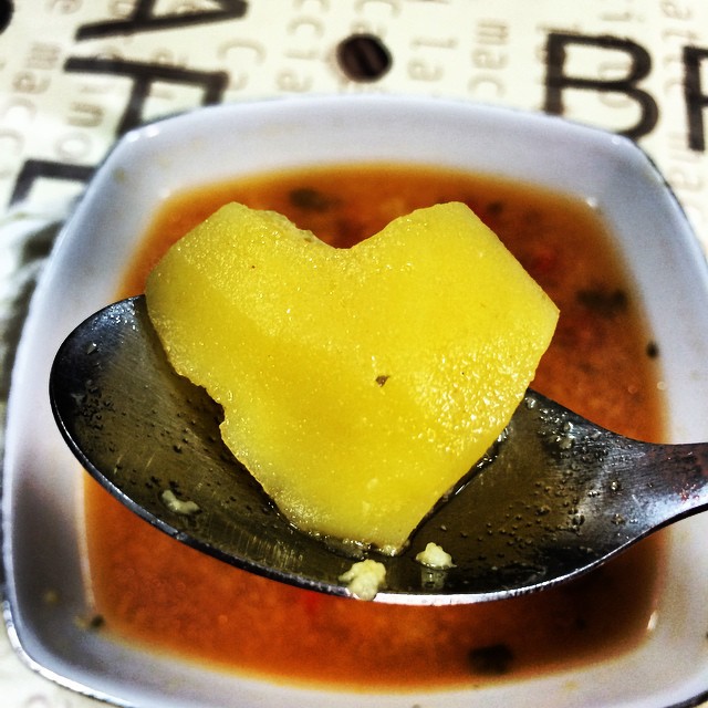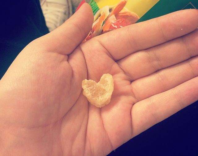 Nu este prima dată când Mantea găseşte inimioare în mâncare, iubirea urmărind-o mereu pe bruneta.