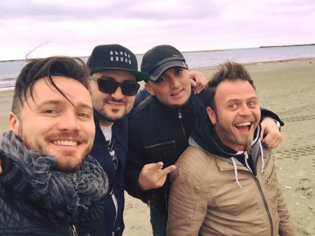 Cântăreţul împreună cu colegii săi de trupă au mers să cânte într-un restaurant cu ştaif din staţiunea Mamaia, dar nu înainte de a se poza la malul Mării Negre.