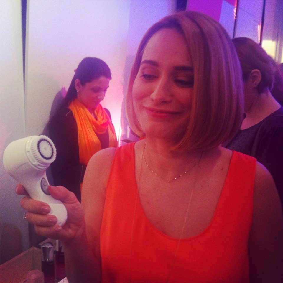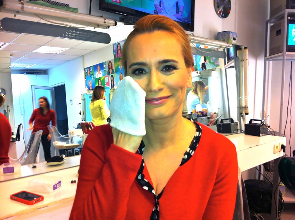 "Am recunoscut că nu am deloc răbdare să mă machiez, coafez și nici vreo oarecare pasiune în acest sens. Dar sunt expertă în demachiaj. Sunt prima care ajunge în cabina de make-up după știri să-mi înlătur și cea mai mică urmă de fond de ten. Și am mai recunoscut că am găsit o metodă perfectă, astfel încât să nu-mi rămână niciun por necurățat: mănușa minune, un fel de șosetă flauşată. De curând, am primit însă și un aparat minune care funcționează cu orice gel de curățat... I'm happy!", a dezvăluit Andreea Esca pe Facebook.