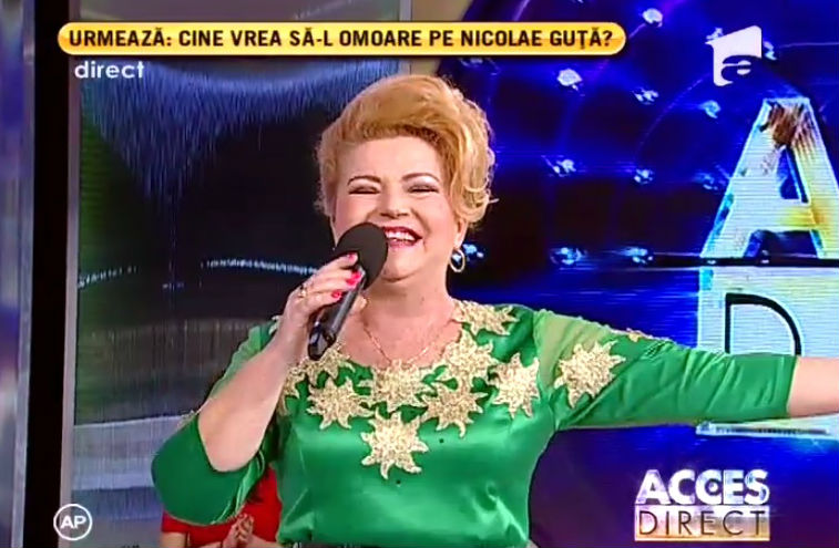 "De emoţie şi fericire, aproape că mă simt ca la 14 ani. Nu ştiu ce mi se întâmplă. Da, Simona, în premieră la tine am venit cu noua mea melodie şi să îţi spun că voi avea o nepoţică. Ei îi voi lăsa toate costumele mele populare şi iile", a declarat ea.