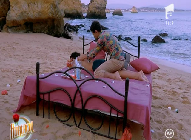 "Burlacul" a dat dovadă de multă pasiune în timp ce îi făcea masaj pe spate concurentei. A sărutat-o minute în şir, iar Ayda a fost văjită de "talentele ascunse" pe care le are "Burlacul". "E atât de senzual şi atât de romântic. Îţi taie răsuflarea! Te lasă fără cuvinte!", a declarat Ayda.