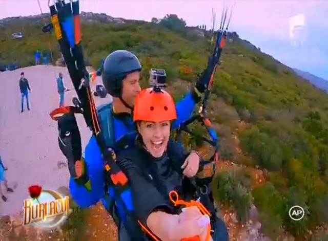 "Eu nu am făcut niciodată lucrul acesta, dar voi face asta pentru prima dată pentru tine. Sper să reuşesc să o fac să fie mai deschisă pentru mine. Eu am frică de înălţime, dar senzaţia e uimitoare", a spus "Burlacul" în timpul zborului.
