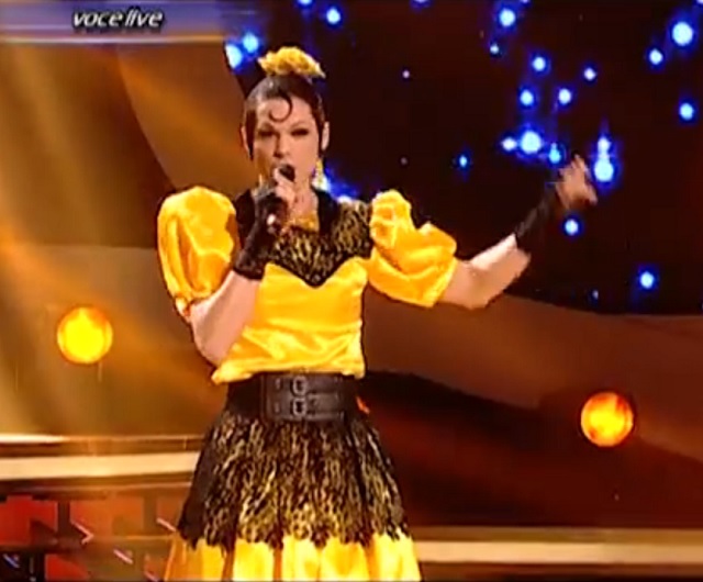 Într-o rochie galbenă, oacheşă, Alex Maţaev nu ar fi putut trece neobservat nici dacă erau luminile stinse. Juriul şi spectatorii s-au distrat copios când l-.au văzut în această postură ingrată pentru demnistatea sa de bărbat.