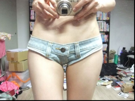 În jurul ei era un dezastru total, însă tipa a fost mai preocupată să-şi facă "selfie-uri" sexy decât să aranjeze lucrurile din cameră. Blugii sunt atât de scurţi încât pot fi confundaţi cu uşurinţă cu o pereche de chiloţi. Pe lângă faptul că sunt scurţi, pantalonii se mulează perfect pe zona intimă.