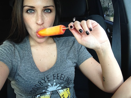 Deşi nu e îmbrăcată foarte sexy, atitudinea ei i-a cucerit pe toţi prietenii ei de sex masculin. Fata asta suge vârful unei îngheţate cu un gest destul de obscen, în timp ce priveşte fix în obiectivul camerei foto. Mai mult, fără ruşine, tipa a pus poza pe contul ei de socializare.