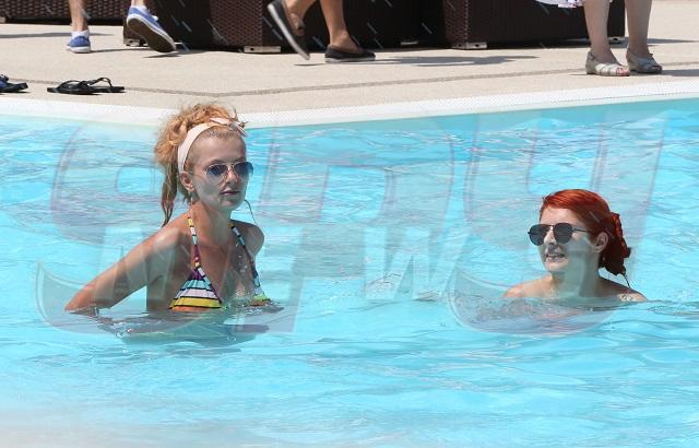 Și, parcă ca să le facă în ciudă celor care o sorbeau din priviri, la un moment dat, Silvia s-a retras într-un colț al piscinei să se hârjonească cu una dintre prietenele ei care, ca un făcut, a insistat să îi aranjeze poziția sutienului, atingerile celor două făcând ca atmosferta să devină și mai fierbinte decât era.