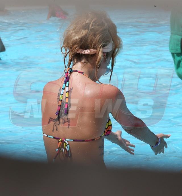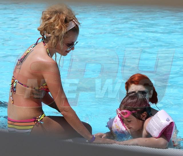 Cu toate că era ”ciuruită” de privirile pofticioase ale bărbaților din jurul ei, Silvia nu s-a formalizat nicio clipă de ele, preferând să înoate relaxată în piscină, să se bucure de soare și, evident, să se distreze cu amciii ei.