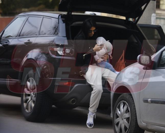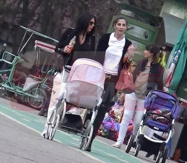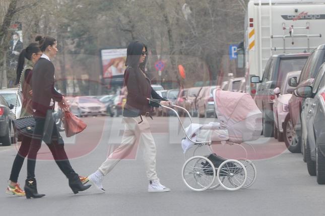 Îmbrăcată cu o geacă de piele şi cu un tricou prin care cu greu reuşim să îi vedem burtica de gravidă, Roxana a ieşit la o plimbare în parc. Nu singură, ci însoţită de nişte prietene şi...un bebeluş.