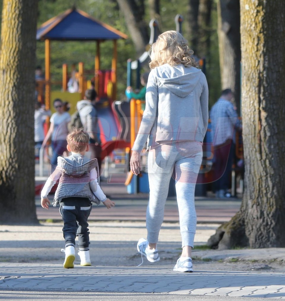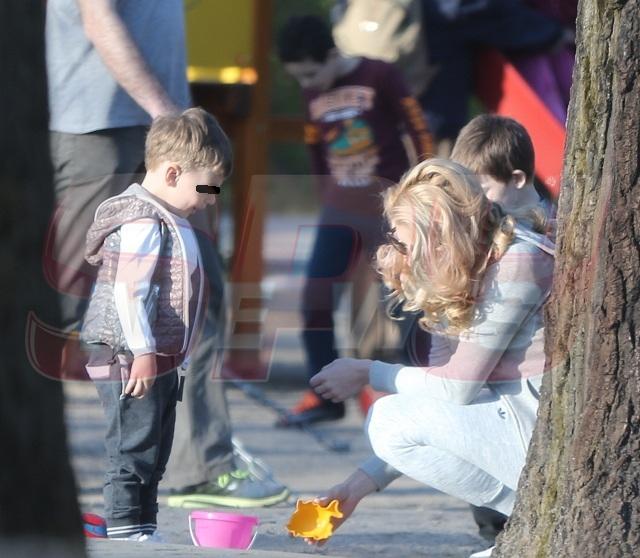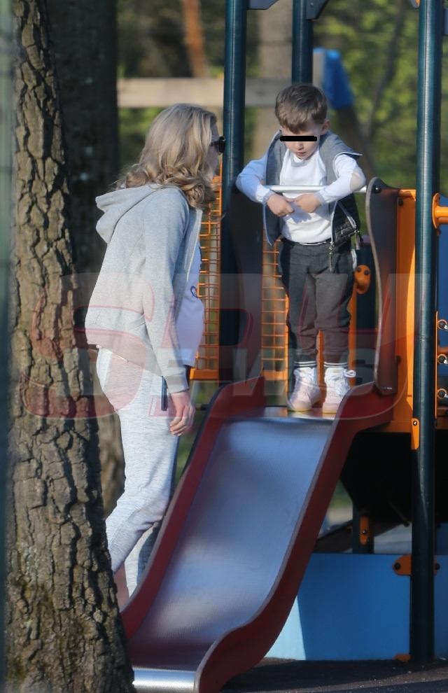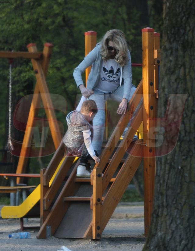 Dacă până atunci părea extrem de serioasă, probabil gândindu-se la problemele din ultima vreme care s-au abătut asupra soțului ei – atât în planul sănătății, cât și al afacerilor -, Alina a început să zâmbească în momentul în care l-a văzut pe fiul ei și al fostului acționar dinamovist cum, fără nicio grijă, se juca în parcul în care se aflau.