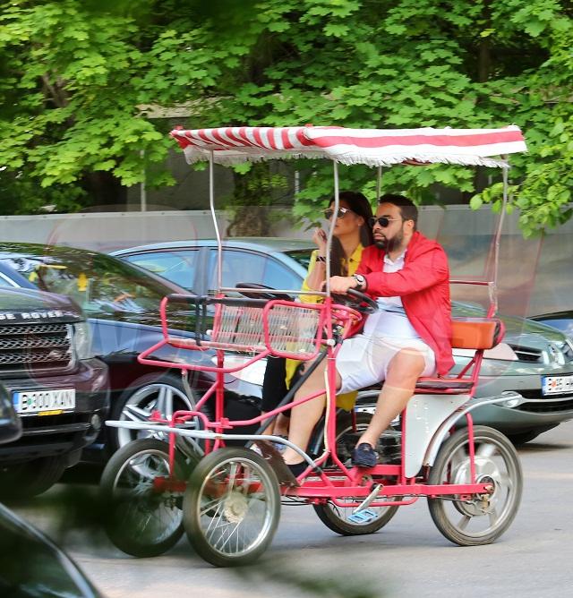 Şi pentru că mişcarea le face bine femeilor gravide, după câteva ture cu bicicleta, cei doi au luat parcul la pas...de mână, fără să le pese nici măcar o secundă de privirile zecilor de curioşi.