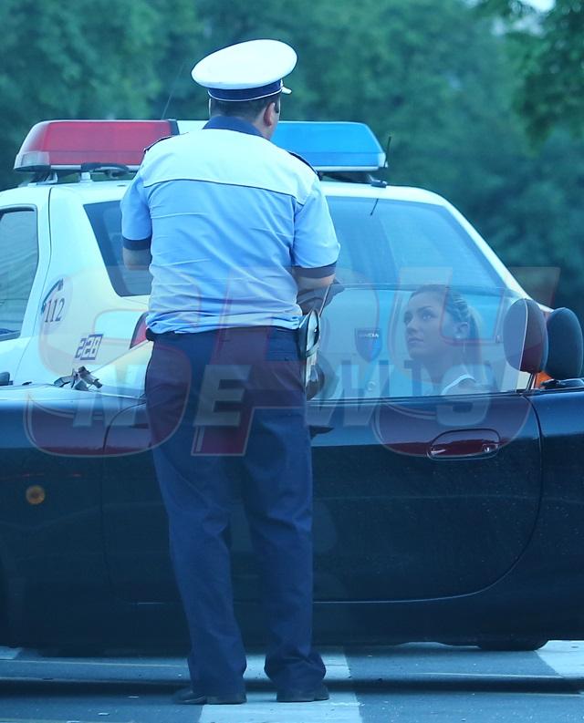 Și, pare-se, blondina a reușit să îl facă pe organul legii să o ierte pentru că, după ce a ascultat câteva minute reproșurile acestuia, a avut puterea să mai și zâmbească. Dar doar după ce s-a ales cu o mustrare verbală și a fost lăsată să plece mai departe cu mașinuța pe care o împumutase de la iubitul ei.
