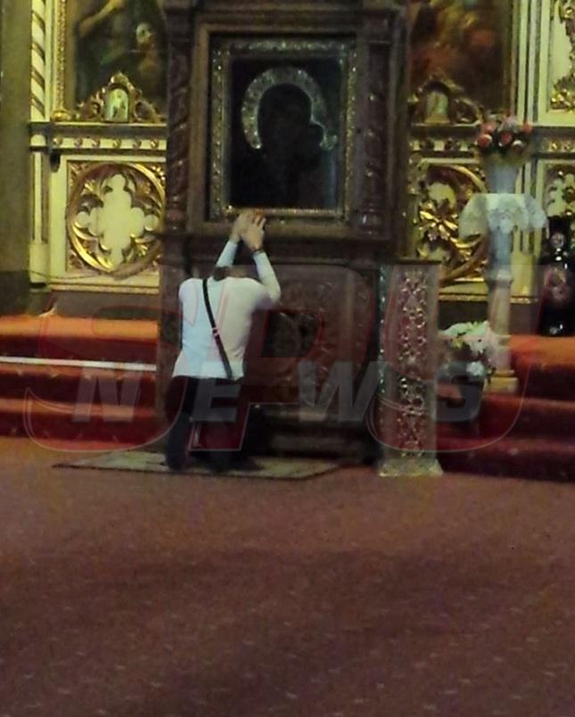 Distrusă, Hueanu a renunţat în cele din urmă. A plecat şi s-a îndreptat ţintă către mănăstirea Ghighiu, din apropierea Ploieştiului. A intrat în biserică, s-a aşezat în faţa icoanei Fecioarei Maria şi - parcă la capătul puterilor, cu palmele atingând chipul Maicii Domnului - a început să plângă. Imaginile vorbesc de la sine.