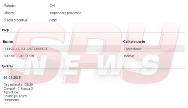 Suma în discuţie nu pare a fi peste nivelul de trai al unui jucător de nivelul lui Pulhac - 14.451 de euro şi 8.253 lei - şi reprezintă un credit contractat de fotbalist în iulie 2008. La finalul anului trecut, după un adevărat du-te-vino prin instanţele din Capitală, Tribunalul Bucureşti a dat câştig de cauză recuperatorilor. Internaţionalul nu a putut face dovada faptului că şi-ar fi achitat datoriile, aşa cum au susţinut avocaţii săi. Mai nou, Pulhac a cerut suspendarea provizorie a acestei decizii, potrivit datelor oferite de portalul instanţelor.