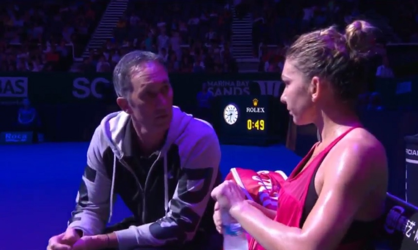 UPDATE 15:01 / Aflată în dificultate, Simona cere ajutorul antrenorului Darren Cahill.