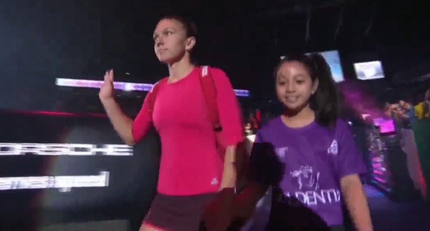 UPDATE 14.33 / Cele dou sportive au intrat în arenă. Explozie de bucurie în momentul în care Simona Halep a păşit pe teren. "Hai, Simona", au strigat românii din tribune.