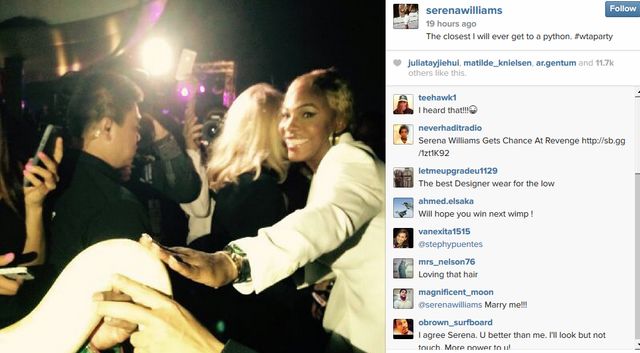 Update ORA 12:40 Cu doar câteva ore înainte de marea confruntare, Serena Williams a postat pe Instagram o imagine la petrecerea WTA de la Singapore, în care apare punând mâna pe un şarpe. "Mai mult nu mă voi apropia de un piton", a scris tenismena pe Instagram.