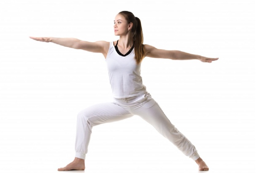 1. Poziţia războinica. Aşază-ţi picioarele paralel, făcând un unghi de 90 de grade cu dreptul. Ridică mâinile până la nivelul umerilor şi menţine-te aşa pentru câteva secunde. Repetă mişcarea de 7-10 ori.