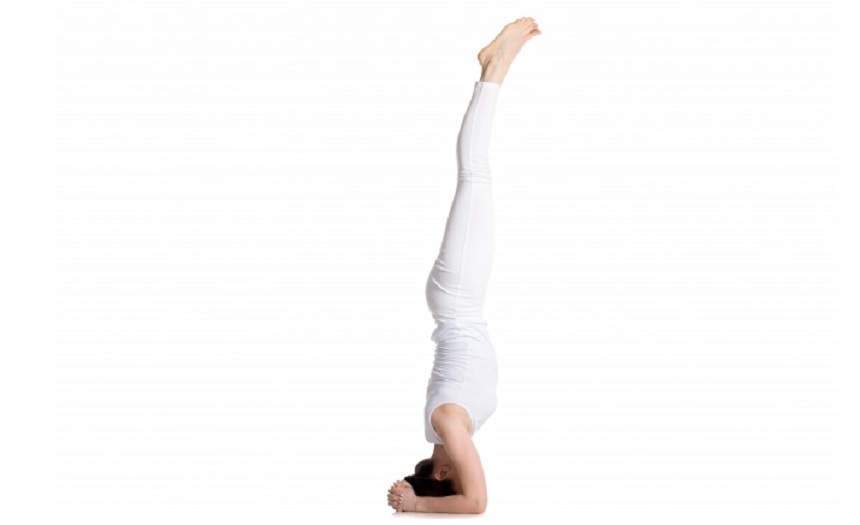 6. Poziţia stat în cap. E puţin mai greu de realizat. Încearcă să stai dreaptă, în cap, sprijinindu-te şi în mâini.