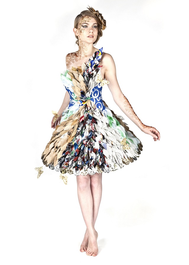 A atras toate privirile la săptămâna modei din Marea Britanie! Cum arată rochia creată doar din gunoi