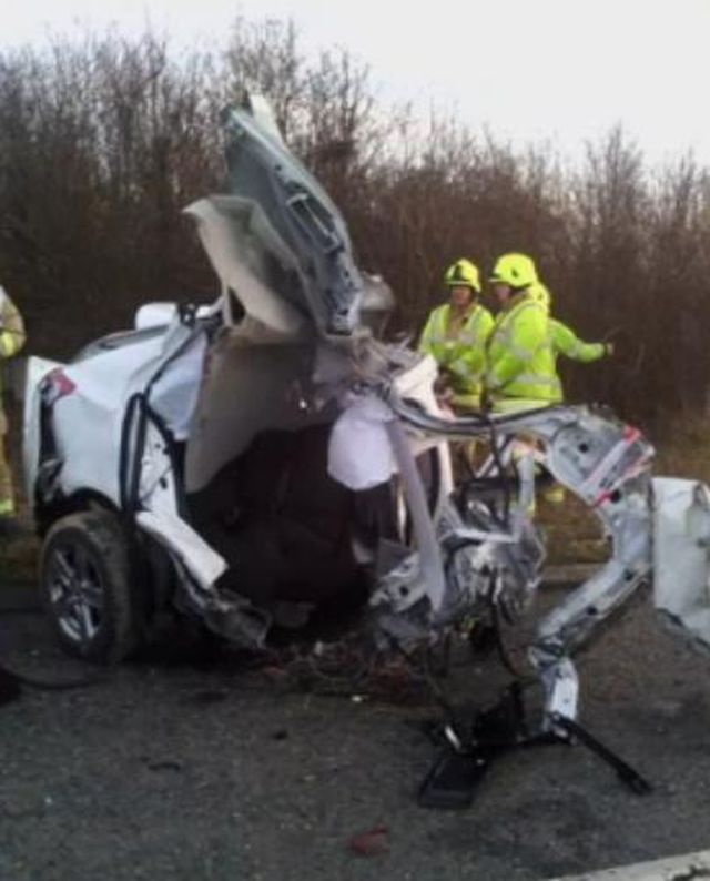 Un şofer a scăpat ca prin minune după ce maşina în care se afla s-a rupt în două. Autoturismul s-a izbit de un semn de circulaţie aflat pe o autostradă din Essex, Marea Britanie, după ce bărbatul a pierdut controlul volanului. Agenţii de la descarcerare au rămas fără cuvinte când au văzut ce mai rămăsese din maşină şi nu-şi imaginează cum a putut scăpa cineva din ea, potrivit news.sky.com