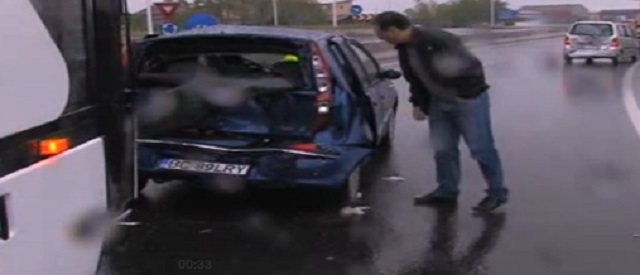 Coliziune în lanţ, cu un autocar şi două autoturisme, în judeţul Buzău, din cauza carosabilului umed. 25 de turişti care se întorceau din Turcia au trecut prin momente de panică după ce autocarul în care se aflau a lovit un autoturism