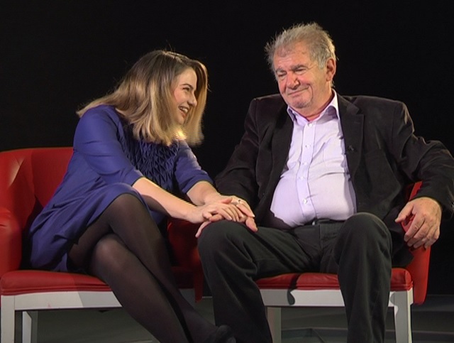 "Întreabă-mă ce aş dori eu să îmi spună ea!", i-a spus Florin Zamfirescu Florentinei Fântânaru, arătând spre fiica lui. "Când era mică... Când eram mici... Noi ne iubeam cum se iubesc caii. Puneam capul aşa... Gât în gât, exact cum stau caii cu capetele... Ei îi plăcea, mie îmi plăcea... Şi nu ne mai iubim aşa! Eu o ţineam în braţe şi mă topeam. Şi nu mai stă să o ţin în braţe. Mă împingea, aşa... Aş mai vrea - şi vreau să o spun public - să îmi spună din când în când «Te iubesc!»", a spus, vizibil emoţionat, Zamfirescu. Emoţionată, fiica marelui actor nu a stat mult pe gânduri şi l-a luat de mână, spunându-i: "Te iubesc!"