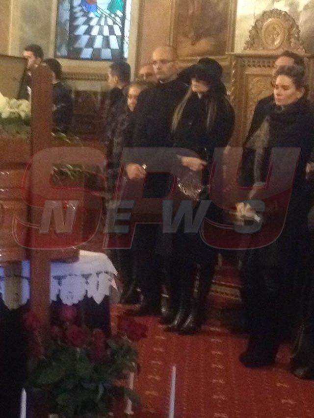 Îmbrăcată în negru şi cu o pălărie supradimensionată pe cap, creatoarea de modă Romaniţa Iovan abia îşi poate stăpâni lacrimile în faţa sicriului în care se află trupul fără suflare al bărbatului cu care a fost căsătorită 5 ani şi împreună cu care are un băieţel.