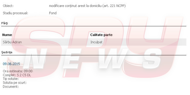La nici două săptămâni de la plasarea sa în arest la domiciliu, Adrian Sârbu a cerut modificarea condiţiilor măsurii preventive. Cererea acestuia a fost depusă la Curtea de Apel Bucureşti. O decizie a judecătoriilor este aşteptată în această dimineaţă.
