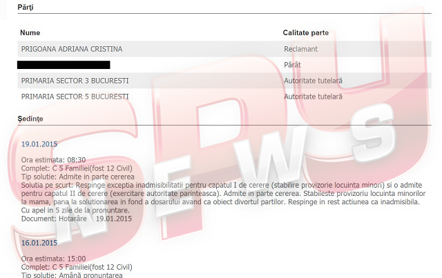 Potrivit surselor noastre, Judecătoria Sectorului 3 a respins excepţiile depuse de soţul Adrianei, a stabilit domiciliul copiilor la locuinţa vedetei şi costodia comună a celor doi copii. Astfel, magistraţii au decis: "Respinge excepţia inadmisibilităţii pentru capătul I de cerere (stabilire provizorie locuinţa minori) şi o admite pentru capătul II de cerere (exercitare autoritate părintească). Admite în parte cererea. Stabileşte provizoriu locuinţa minorilor la mamă, până la soluţionarea în fond a dosarului având ca obiect divorţul părţilor. Respinge în rest acţiunea ca inadmisibilă. Cu apel în 5 zile de la pronunţare".