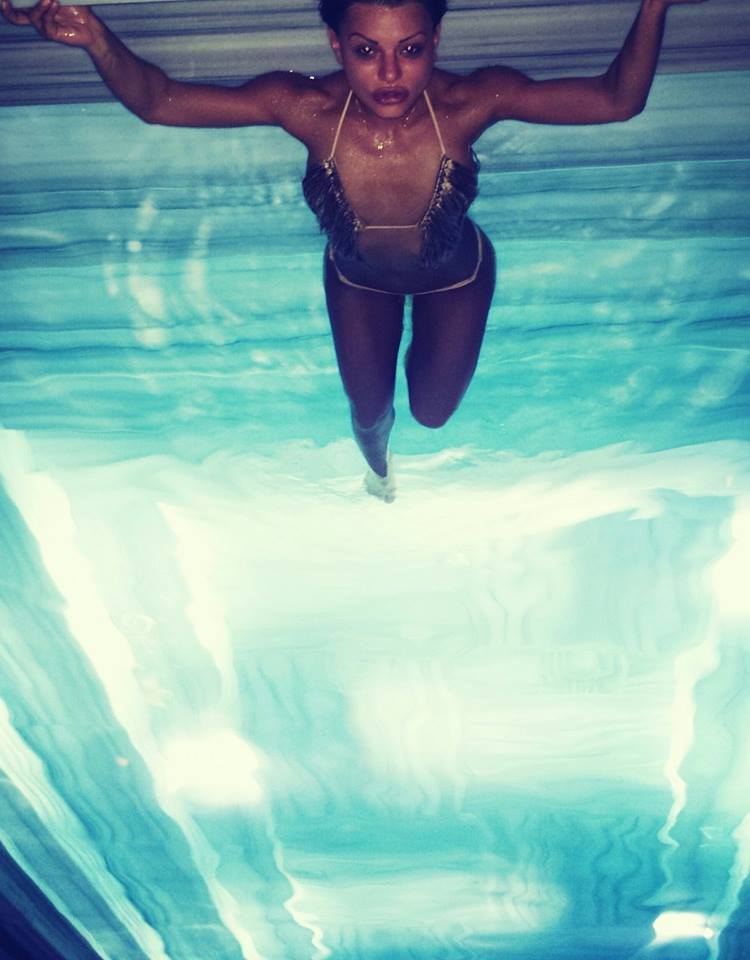 Aflată la piscină, asistenta TV şi-a unduit corpul într-o aşa manieră încât pare că sfidează orice lege a gravitaţiei! Ipostaza nu a făcut decât să scoată şi mai tare în evidenţă sex appeal-ul roşcatei şi să ridice, chiar şi pe timp de seară, gradele în termometre!