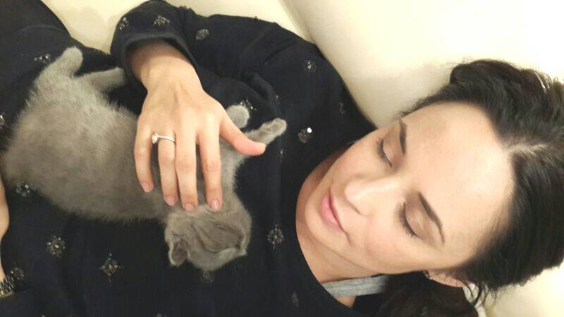 De curând, vedeta a postat pe o reţea de socializare o fotografie în care apare dormind pe canapea împreună cu animăluţul. Imaginea este însoţită de mesajul: "Somn lin, vis senin!"