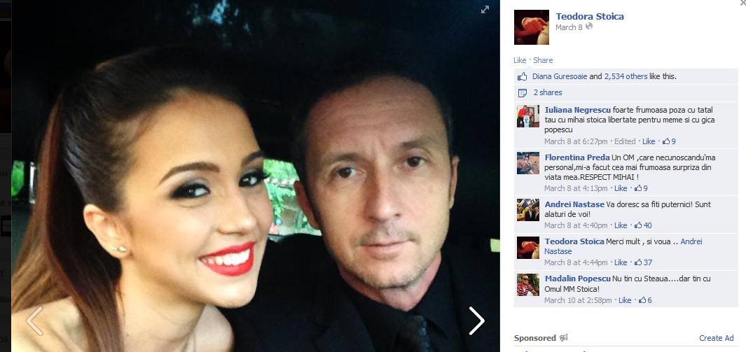 I-au dat lacrimile când l-a văzut în boxa acuzaţilor. Finalul procesului a fost dramatic. Teodora s-a apropiat de tatăl ei, l-a sărutat, apoi a izbucnit în plâns. Tânăra a vorbit despre suferinţa sa şi pe contul de socializare unde şi-a postat o fotografie în care apare împreună cu tatăl său. Sub aceasta, Andrei Năstase i-a lăsat un mesaj emoţionant, de susţinere.