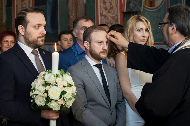 Băiatul regretatului jurnalist Dumitru Tinu şi-a pus pirostriile! Andrei şi-a luat inima în dinţi şi şi-a dus iubita în faţa altarului, fiind "ajutat" de naşii lui, nimeni altul decât omul de afaceri Andrei Ţîrdea şi mama acestuia.