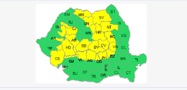 Şi asta nu e tot! Este cod galben de vreme rea şi în următoarele zone: