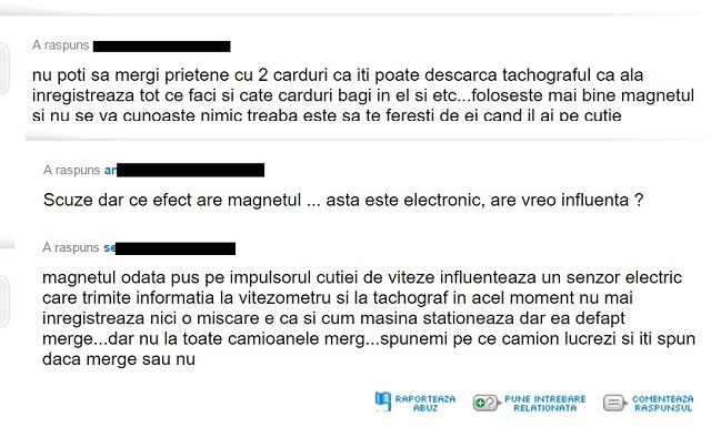 Cum influenţează magnetul respectiv tahograful? Explică un "meseriaş", care nu dă doi bani pe lege: "După ce măsluieşti tahograful cu card digital, poţi să mergi 24 de ore pe zi şi la ce viteza vrei, întrucât este dezactivat şi limitatorul de viteză, iar tahograful înregistreaza în timpul mersului SOMN. Mai este un truc, cu filtrul de ţigară, şi poţi merge pe autostradă undeva la 100 km/h, iar tahograful înregistrează undeva la 80-85 km/h . Asta am învăţat de la napoletani care sunt platiti la kilometru. Chestia cu magnetul este ceva mai delicată şi nu funcţionează cu orice magnet. Trebuie un magnet mai... şmecher". Pe de altă parte, un alt şofer susţine că există chiar patroni care măsluiesc tahografele, pentru a-i determina pe angajaţi să muncească non-stop: "Chestia cu tahograful au reclamat-o chiar şoferii, deoarece erau obligaţi să conducă chiar şi 20-22 de ore /zi la viteze care noaptea ajungeau şi la 110-130km/h . Se rugau să fie opriţi de poliţişti, că nu mai puteau".
