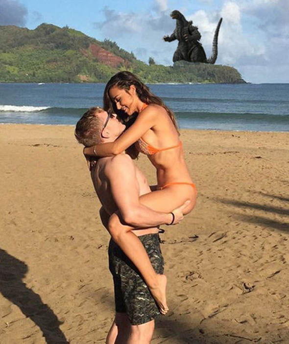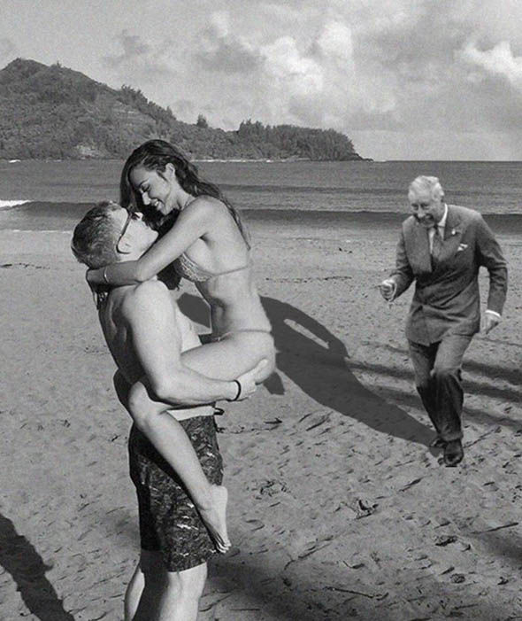 În alt instantaneu, pe plajă își face apariția Godzilla. Nici prințul Charles nu a fost uitat și apare lângă cei doi, alergând. Imaginea care le-a adus cel mai tare zâmbetul pe buze internauților este cea în care tinerei i-a fost înlocuită fața cu cea a lui Donald Trump, candidat al alegerilor prezidențiale din Statele Unite.