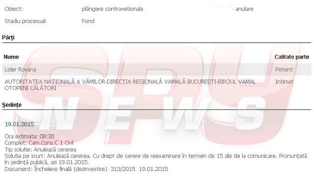 Vrăjitoarea a ajuns să se judece cu Autoritatea Naţională a Vămilor, după ce - potrivit surselor noastre -, în martie anul trecut, a fost oprită pe Aeroportul Otopeni şi sancţionată de oamenii legii. Motivul: Vanessa avea asupra ei o cantitate foarte mare de aur, în bijuterii. Vrăjitoarea a atacat în instanţă procesul verbal, iar în urmă cu câteva zile, judecătorii i-au respins cererea.