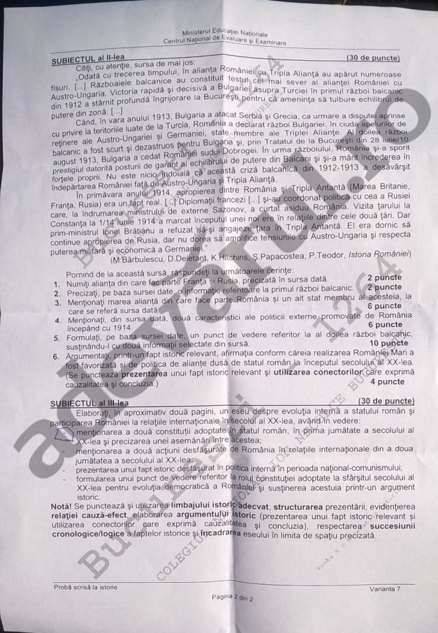 La ultimul punct la proba de istorie, elevii au avut de redactat un eseu despre evoluţia statului român şi participarea României la relaţiile internaţionale în secolul al XX-lea.Platforma Edu.ro va publica astăzi, în jurul orei 15:00 subiectele şi baremele de corectare la probele obligatorii ale profilului.