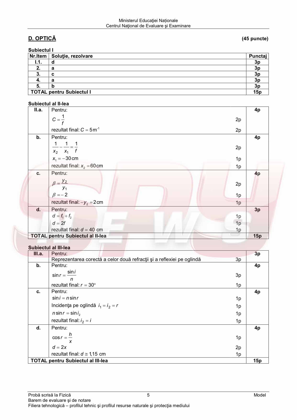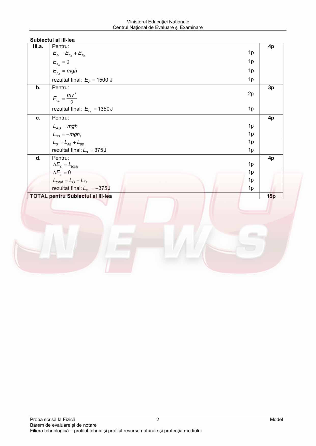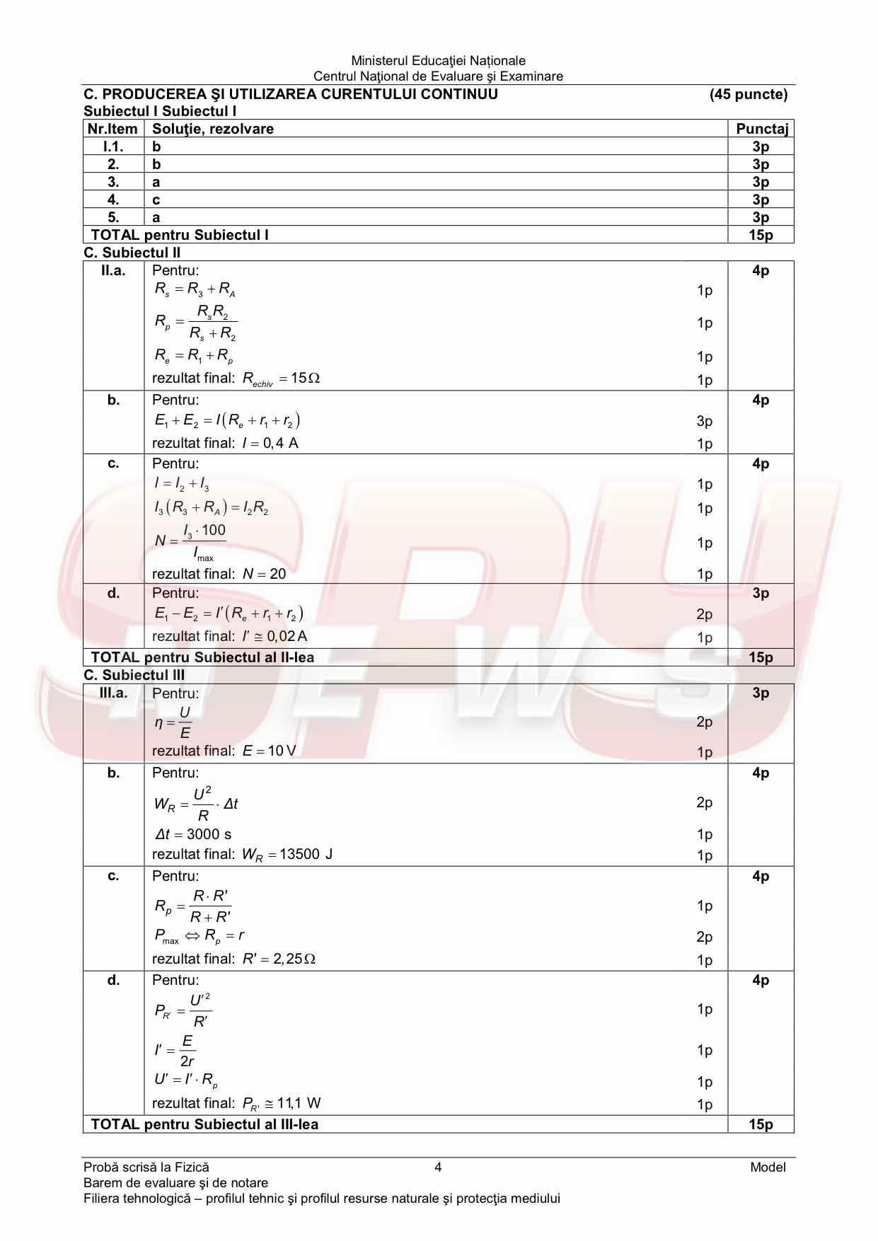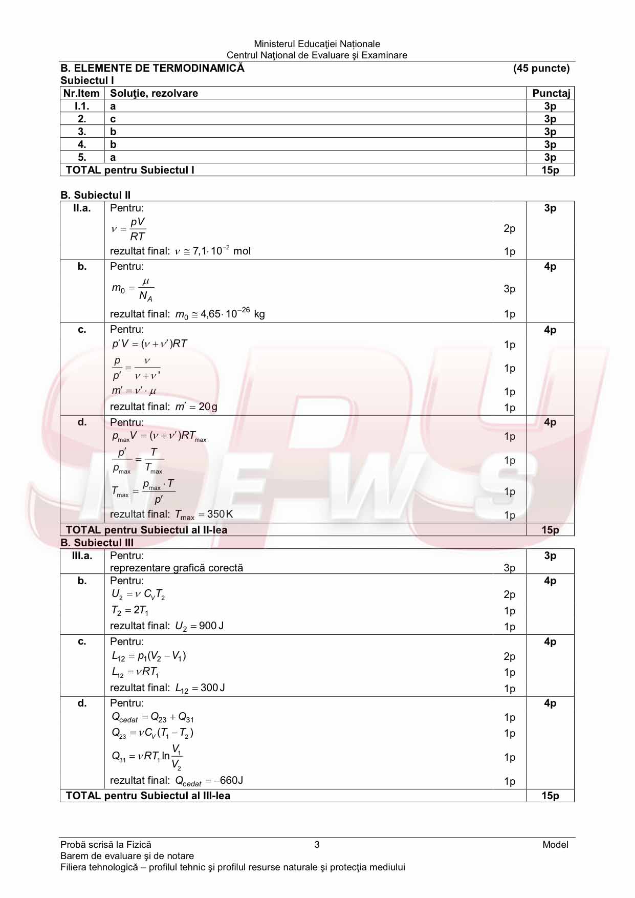 MODELUL DE SUBIECTE, profil tehnologic şi BAREMUL DE CORECTARE