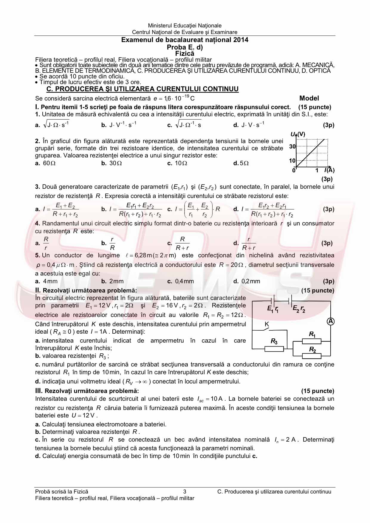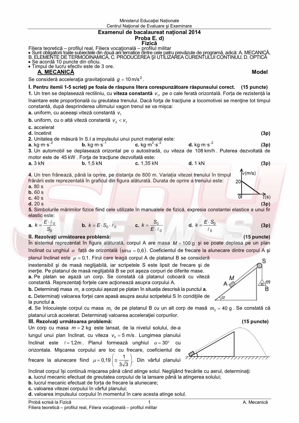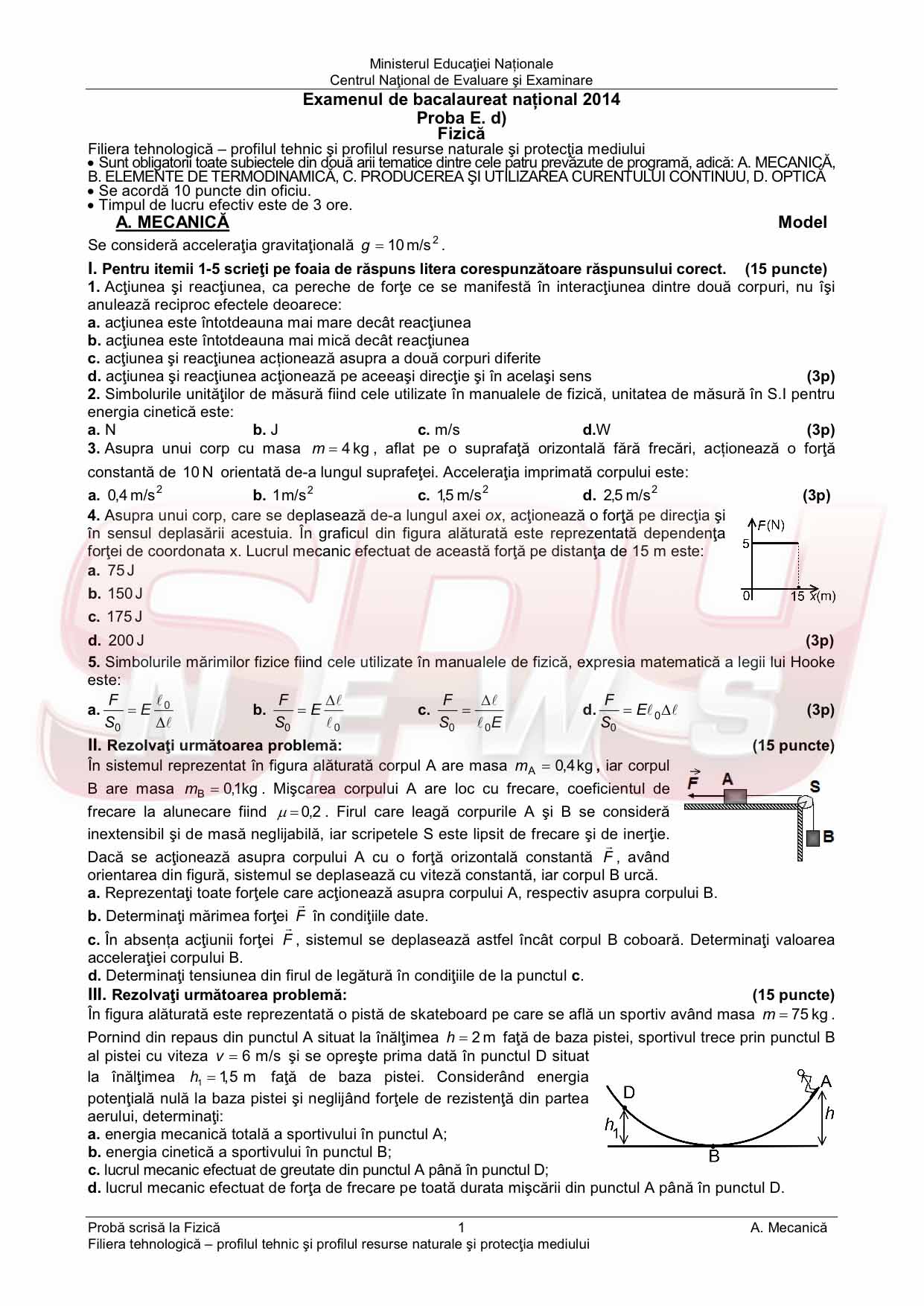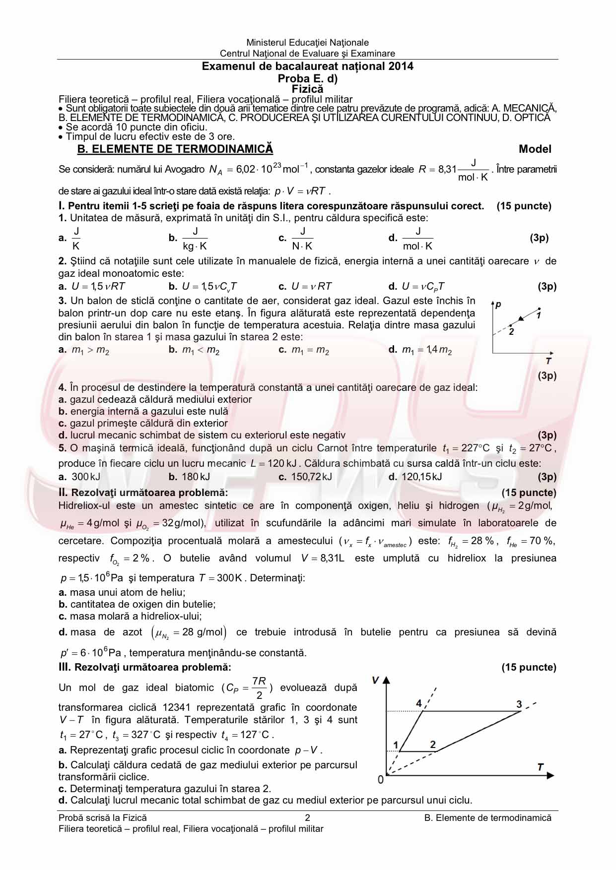BACALAUREAT 2014 / MODELE de SUBIECTE la FIZICĂ şi BAREM de corectare