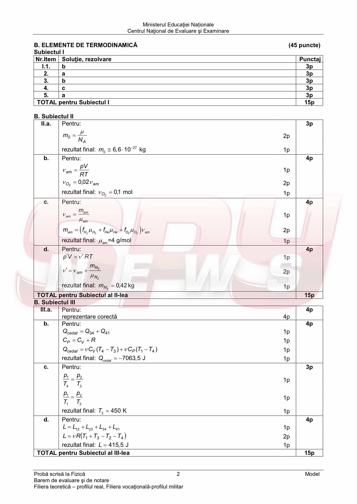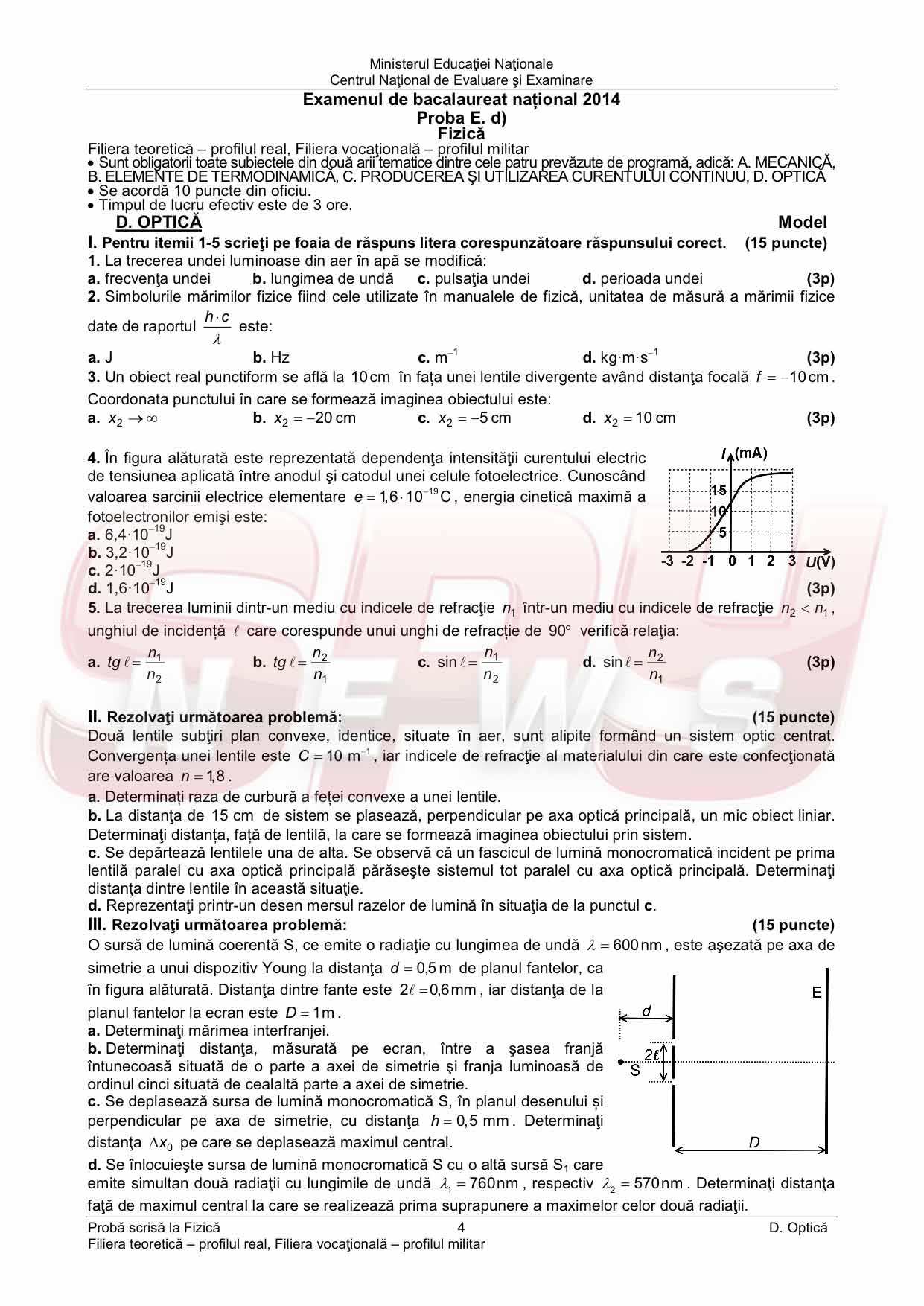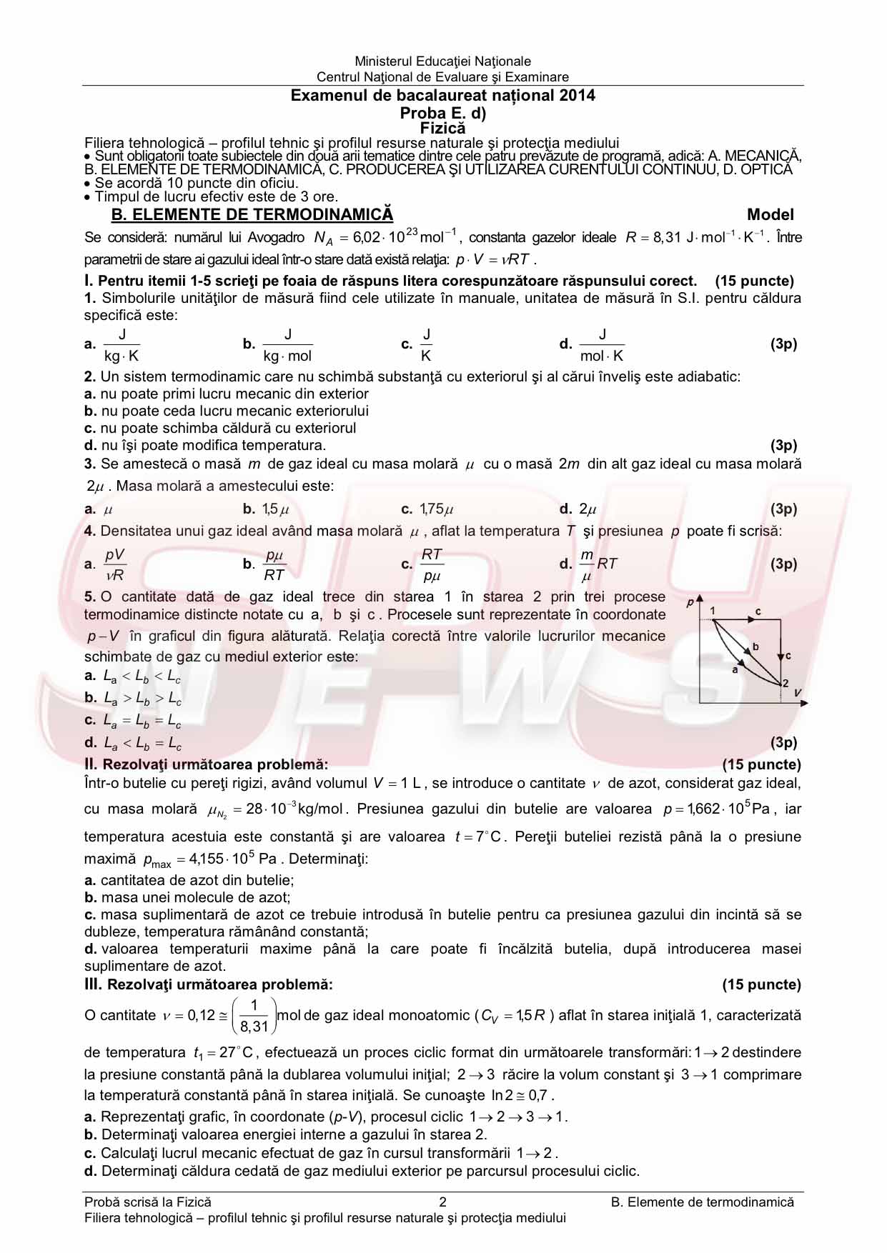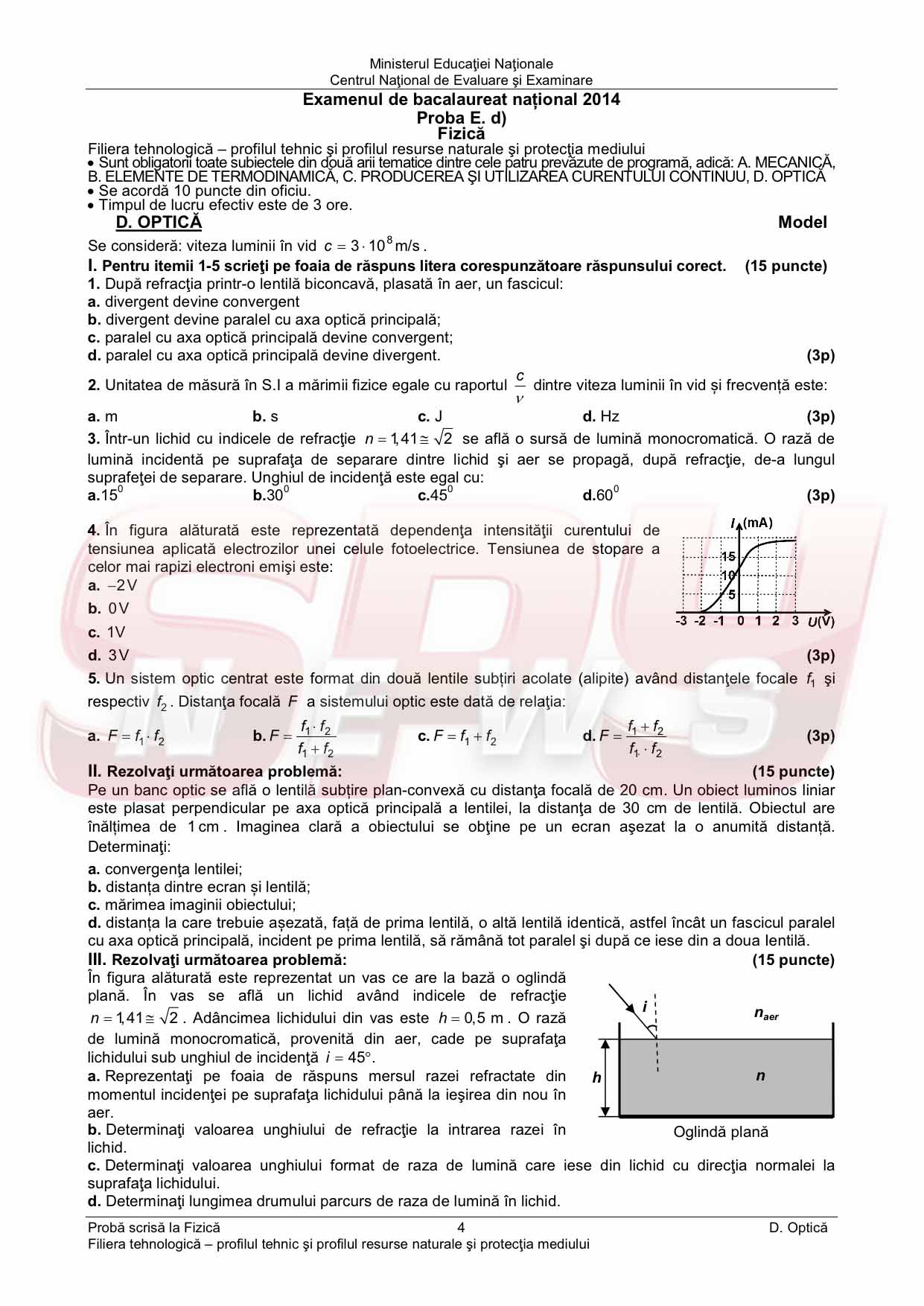 BACALAUREAT 2014 / MODELE de SUBIECTE la FIZICĂ şi BAREM de corectare