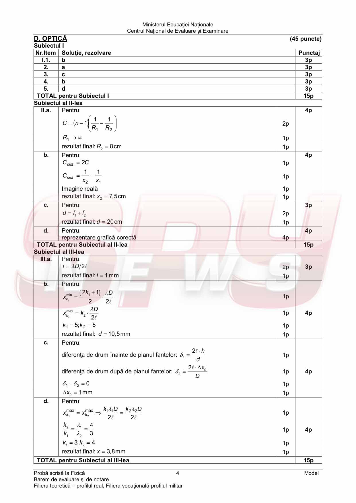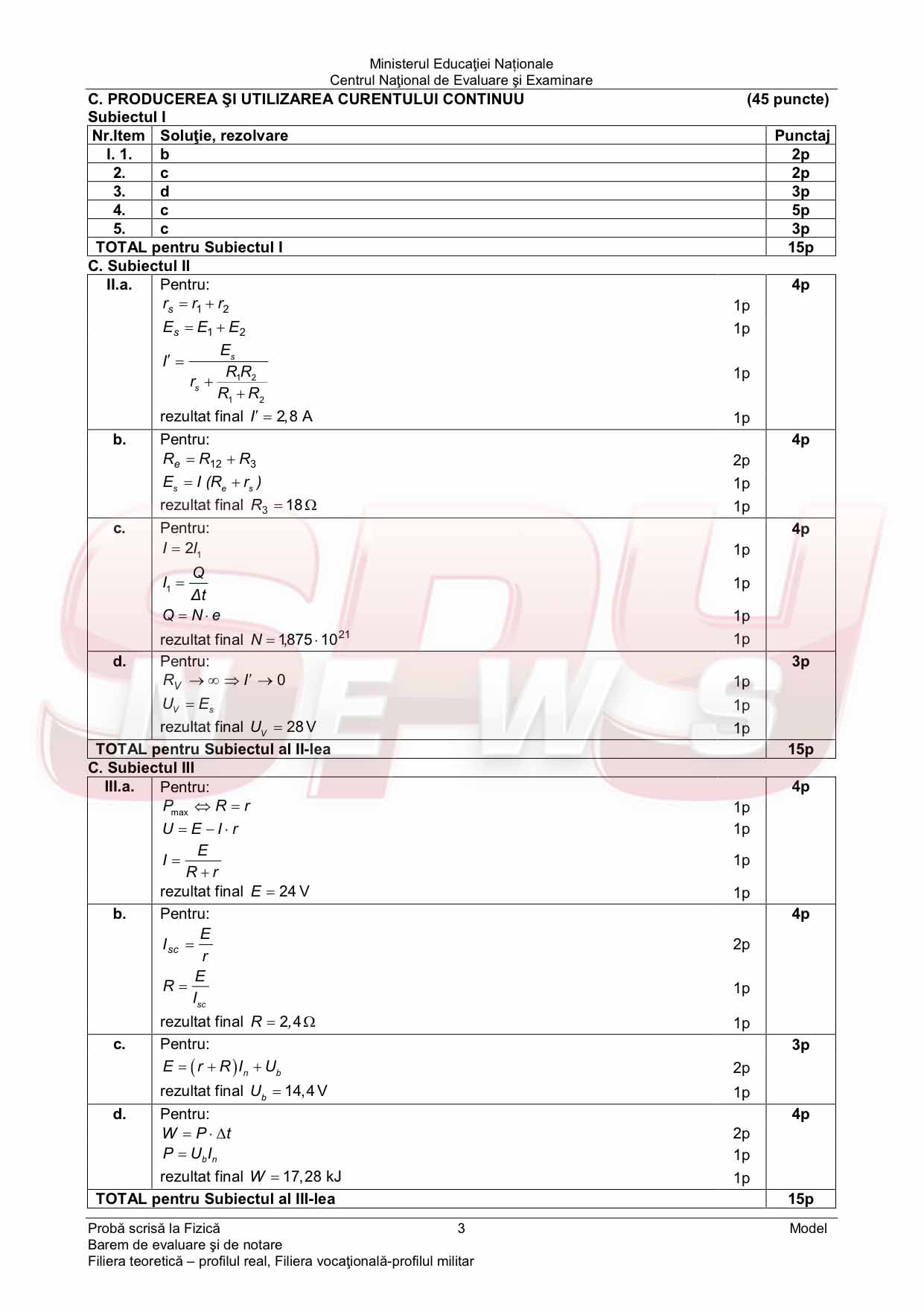 Şi pentru Proba la FIZICĂ, in cadrul Bacalaureatului 2014, elevii vor avea de rezolvat trei subiecte, fiecare dintre ele notate cu 30 de puncte. Proba la Fizică va fi sustinută de către candidatii la licee cu profil teoretic sau tehnologic. Modelele de subiecte cât şi baremul de corectare sunt prezentate mai jos dupa cum urmează: