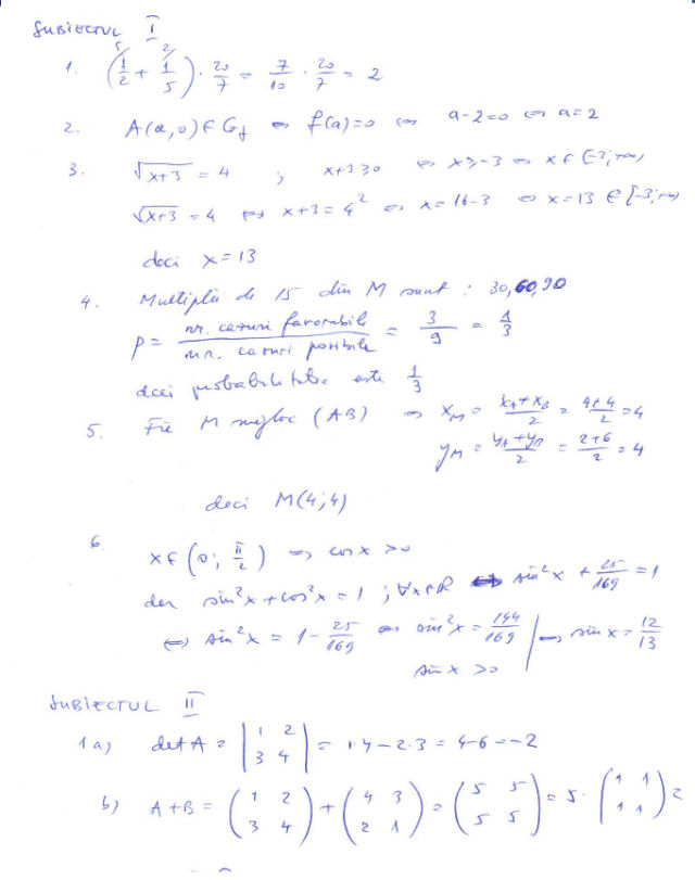REZOLVARE SUBIECTE BACALAUREAT 2015, la Matematică- Tehnologic