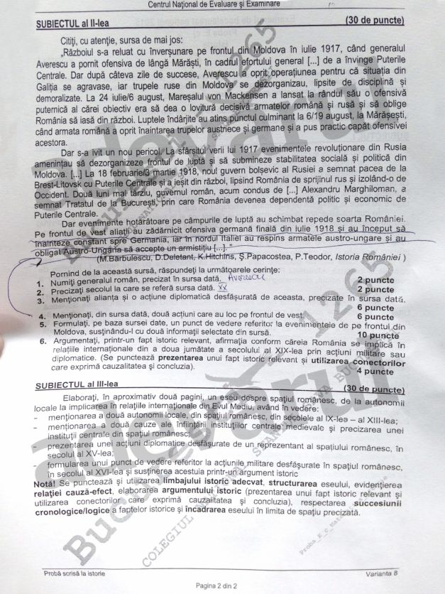 Absolvenţii claselor a XII-a au avut de trecut proba la istorie miercuri! Elevii au avut de rezolvat Varianta 8, la care au avut de rezolvat trei subiecte din Istoria românilor.