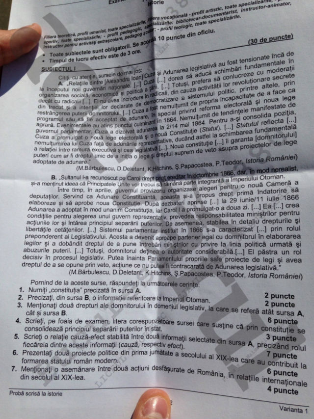 Homepage » Actualitate » Bacalaureat 2015. Subiectele la proba scrisă la Matematică sau Istorie. Uite ce le-a "picat" candidaţilor