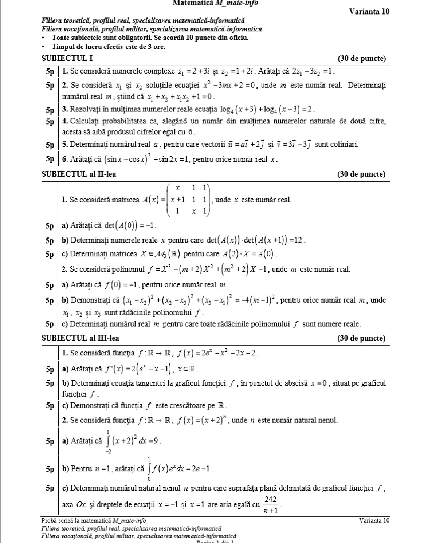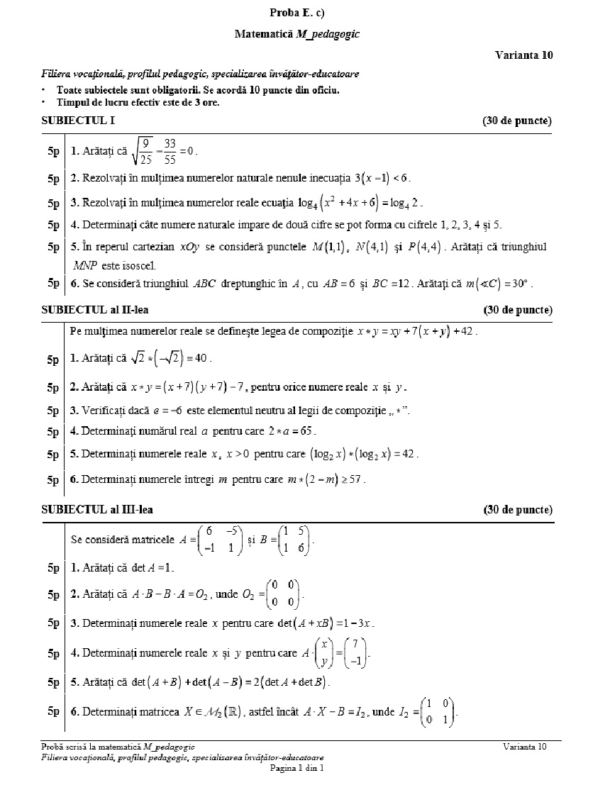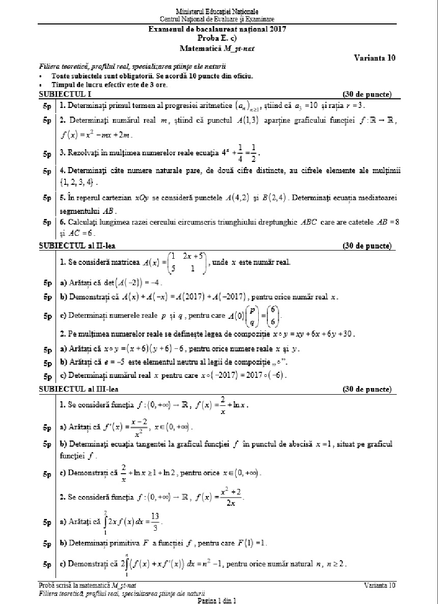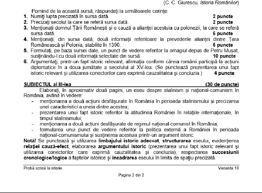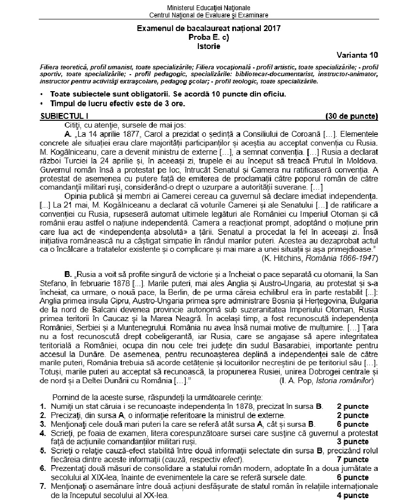 23 august 2017: Proba obligatorie a profilului - proba scrisă